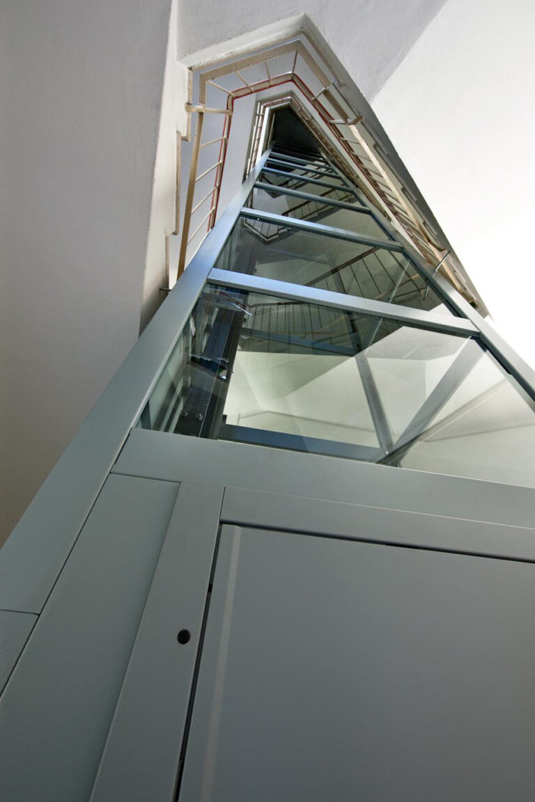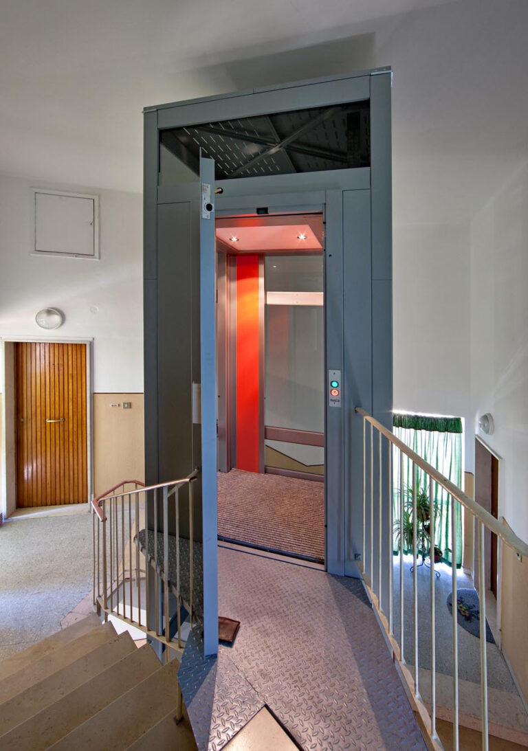 Piattaforma Elevatrice in condominio a Senigallia. Installazione interna vano scale e perfettamente inserita in ambiente preesistente.