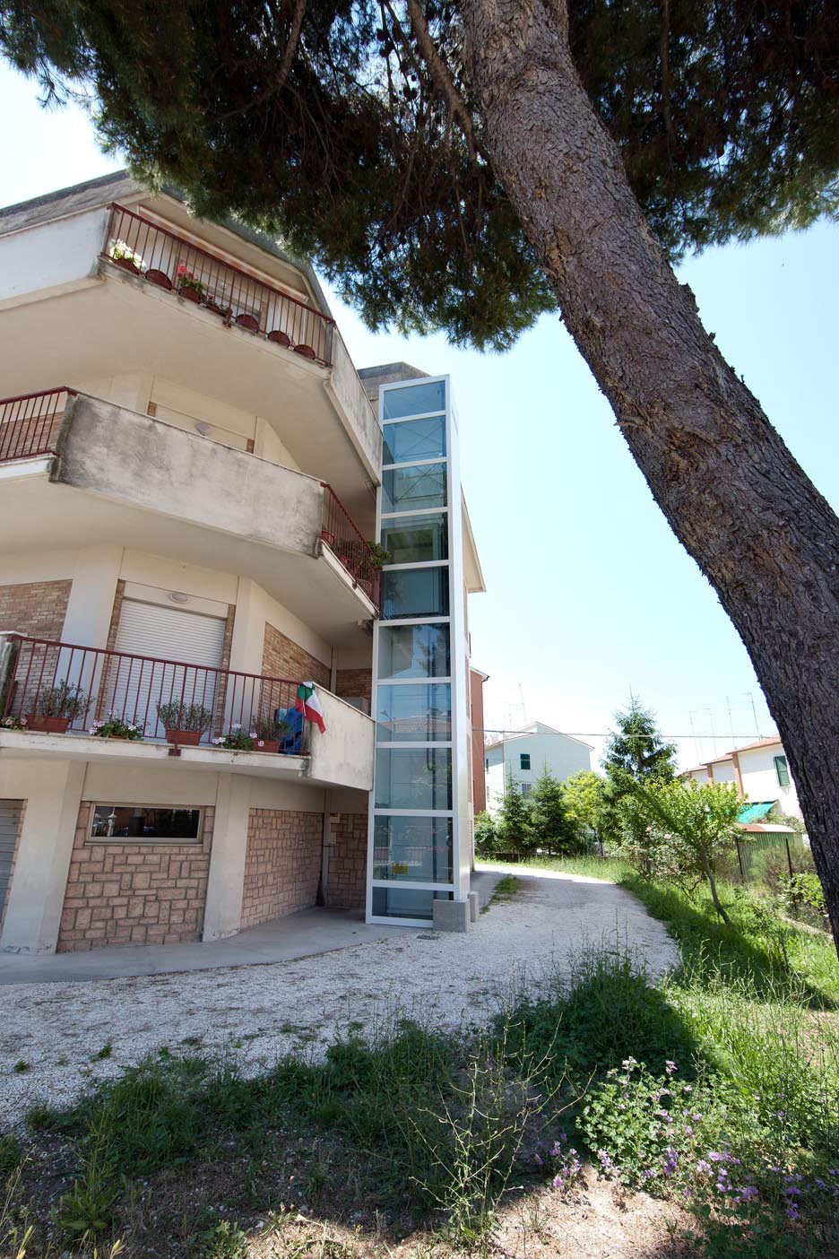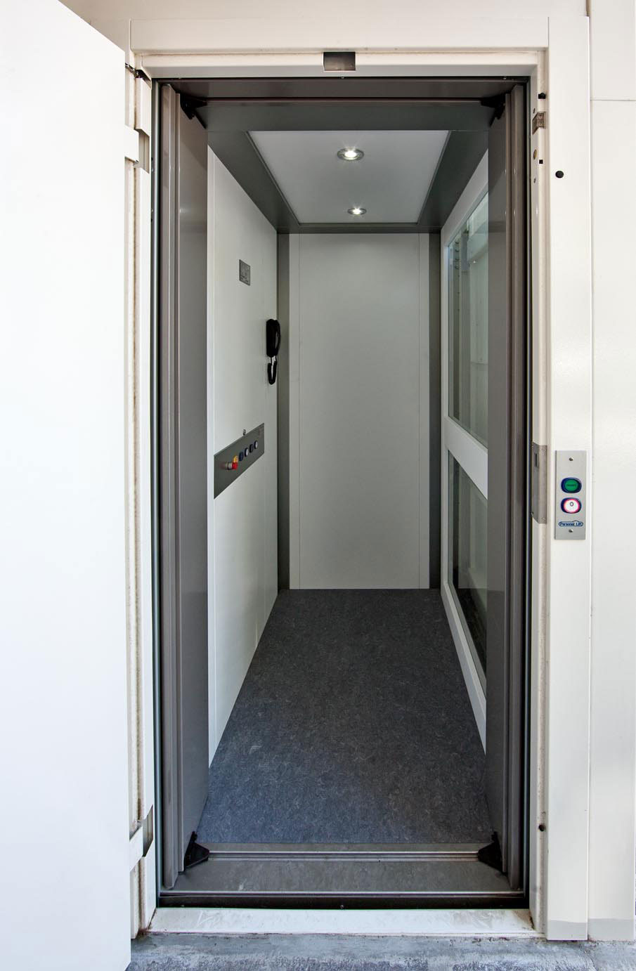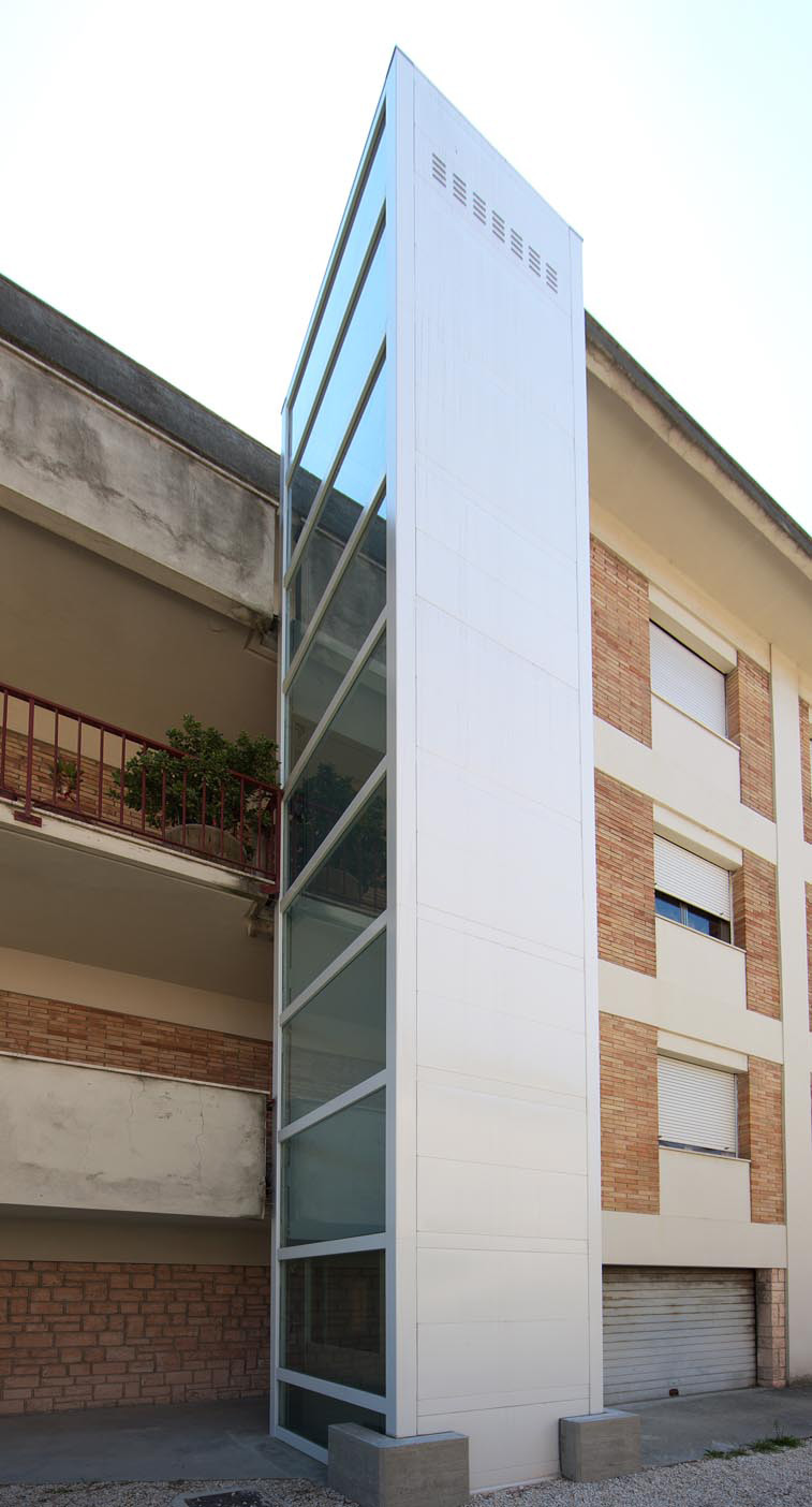Piattaforma elevatrice con cristalli di tamponamento. Parete cabina e struttura metallica per una confortevole visione del paesaggio.