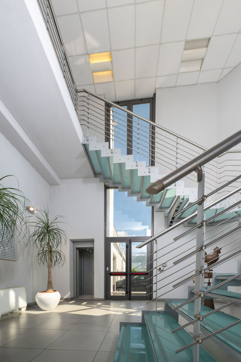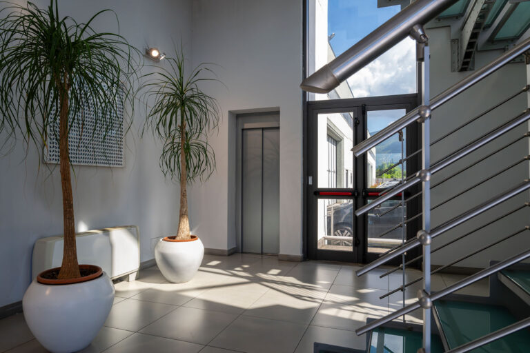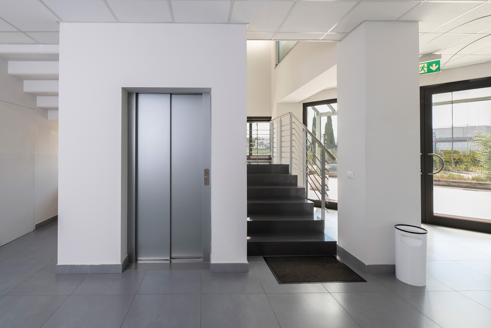 Piattaforma elevatrice in attività industriale realizzata con finiture di pregio. Perfetta continuità con l’ambiente circostante.